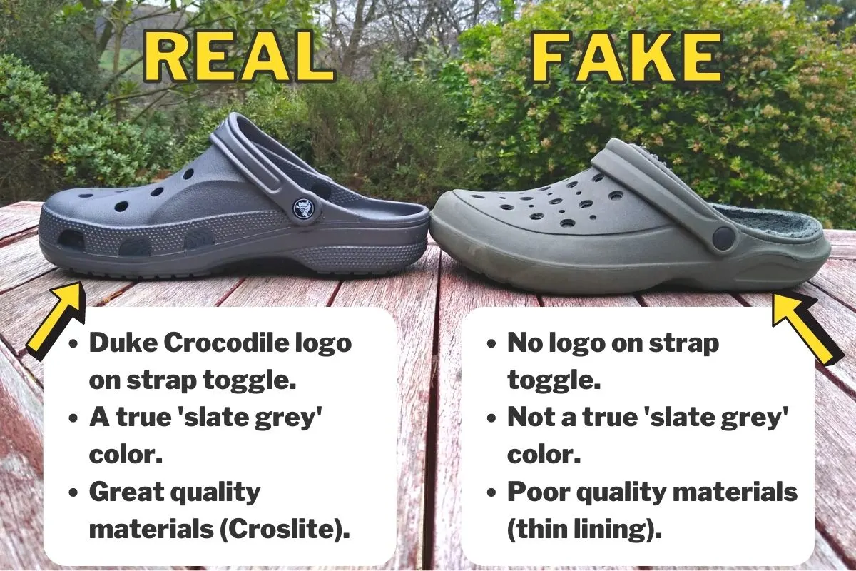 Every pair we sell—Crocs or Birkenstock—is checked and verified for authenticity. Below is a simple comparison to help you understand real vs fake Crocs.